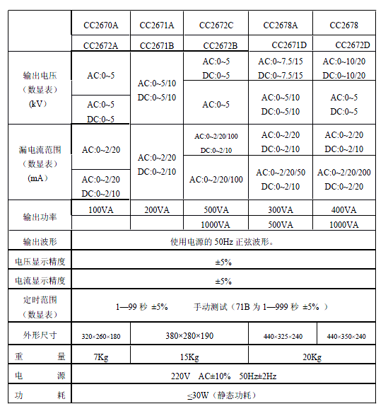 名稱:CC2672A耐壓測試儀